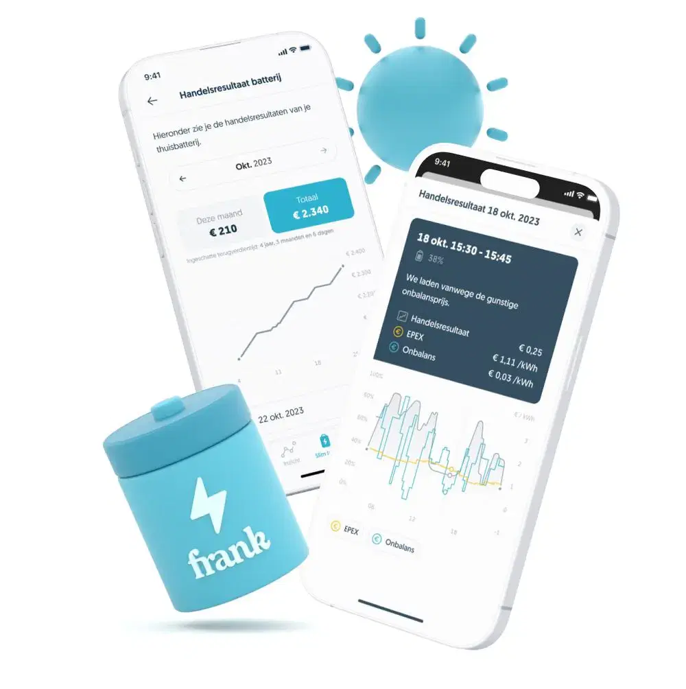 Na een adviesgesprek over de beste oplossing voor jouw situatie, installeert een professioneel team binnen 4 weken jouw thuisbatterij bij jou thuis en zorgen zij dat alles optimaal werkt. Heb je energie van Frank Energie, dan stellen we ook in dat je extra rendement kan maken door handelen op de onbalansmarkt. Met deze geïntegreerde systemen ben je verzekerd van een efficiënte en kosteneffectieve energieoplossing voor je hele huishouden. Of je nu zonnepanelen hebt of niet, de Energreen thuisbatterij bied je altijd de meest voordelige energieopties.